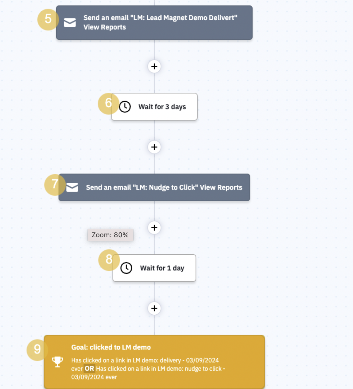 Step 10 : You can choose to send additional emails if they haven’t opened or downloaded the lead magnet, or you can end the automation here. If they have opened the emails, you can extend the automation by creating more emails, such as sales sequences, to further engage them.