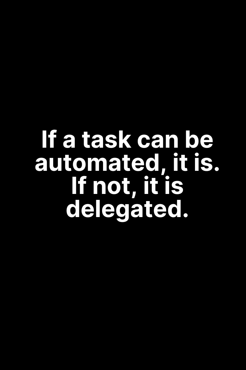 His approach ensures that if a task can be automated, it is. If not, it is delegated.