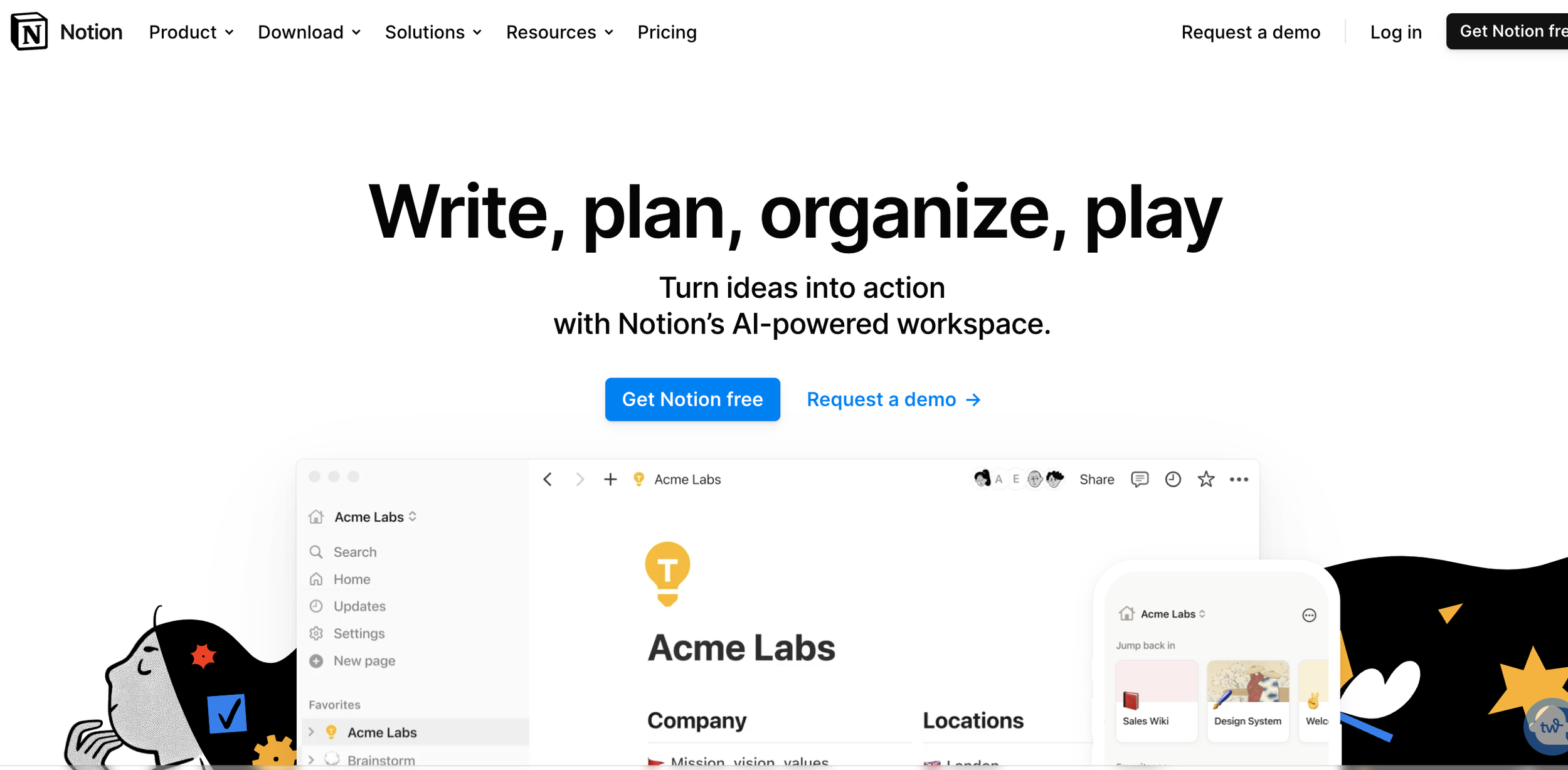 Notion serves as the central hub for Welsh's business operations. It is used for project management, content planning, networking, and maintaining his company roadmap. Notion's flexible and minimalistic design allows Welsh to customize workflows and manage content efficiently.