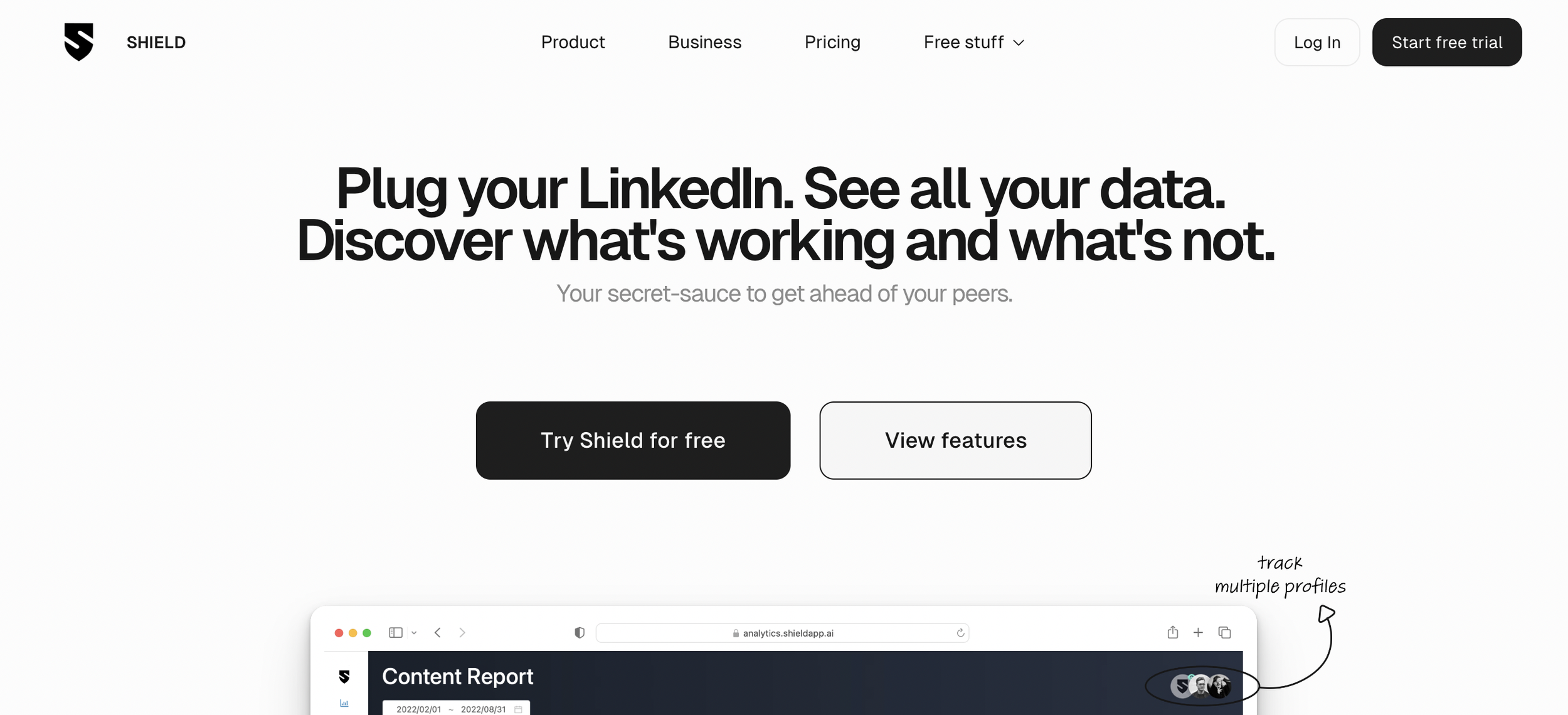 Shield provides analytics for Welsh’s LinkedIn posts. It helps with performance tracking, repurposing old content, and understanding what resonates with his audience, aiding in the optimization of his LinkedIn strategy.