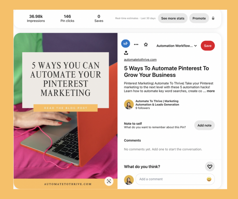 As a marketing automation and Pinterest service provider, I’m all about optimizing for keywords like “marketing automation” and “lead generation.”